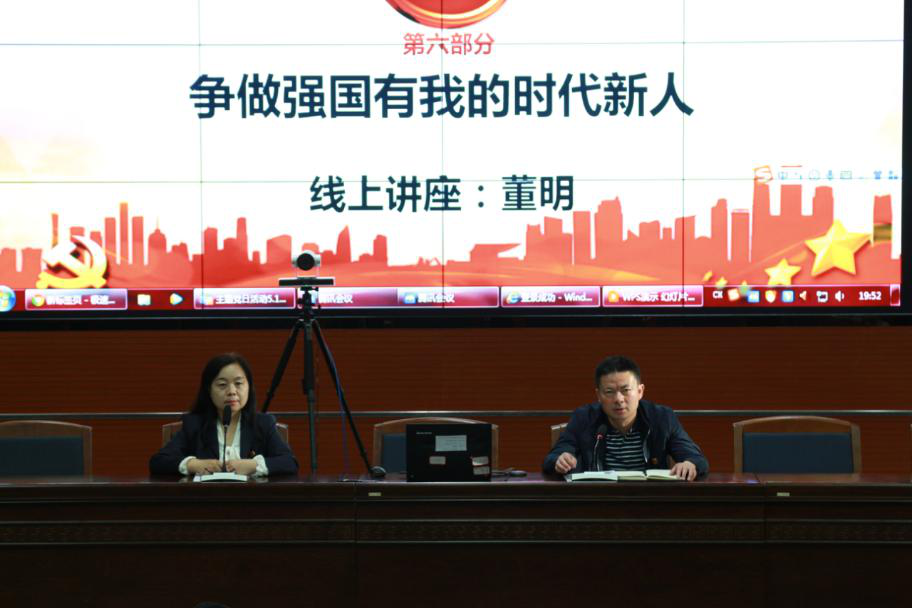 报告厅内,校党委委员、纪委书记陈新泉出席此次主题党日活动,学校信息工程学院全体党员、175名入党积极分子参加,党支部书记王凤梅主持;在武软会场,75名学生党员、入党积极分子参加,计算机学院党总支书记肖新梅主持会议。全国道德模范、自强模范、武汉软件工程职业学院教师董明为两地师生做了“争做强国有我的时代新人”的线上主题讲座。