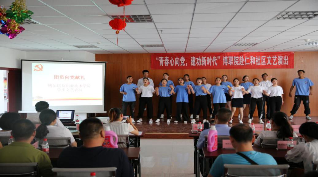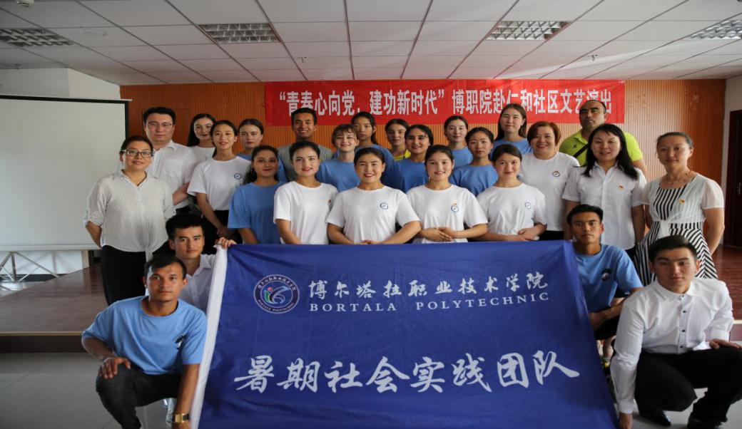 为积极响应学院团委下发的“青春心向党,建功新时代”主题团日活动,引导团员青年牢固树立正确的世界观、人生观、价值观,激发青年学子树立远大理想,增强历史使命感和社会责任感。在建党98周年来临之际,博职院学生暑期社会实践团队来到博乐市青达拉街道仁和社区,为社区广大居民献上以“青春心向党,建功新时代”为主题的一台自编自导的文艺演出。