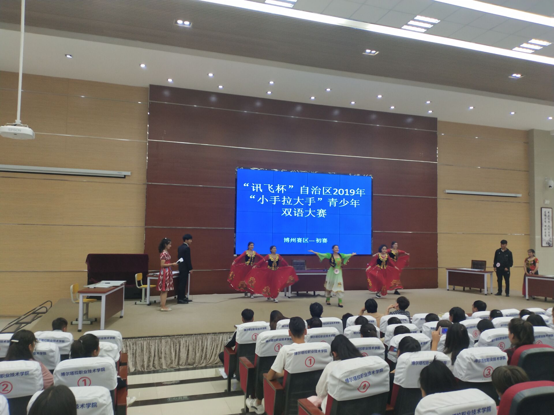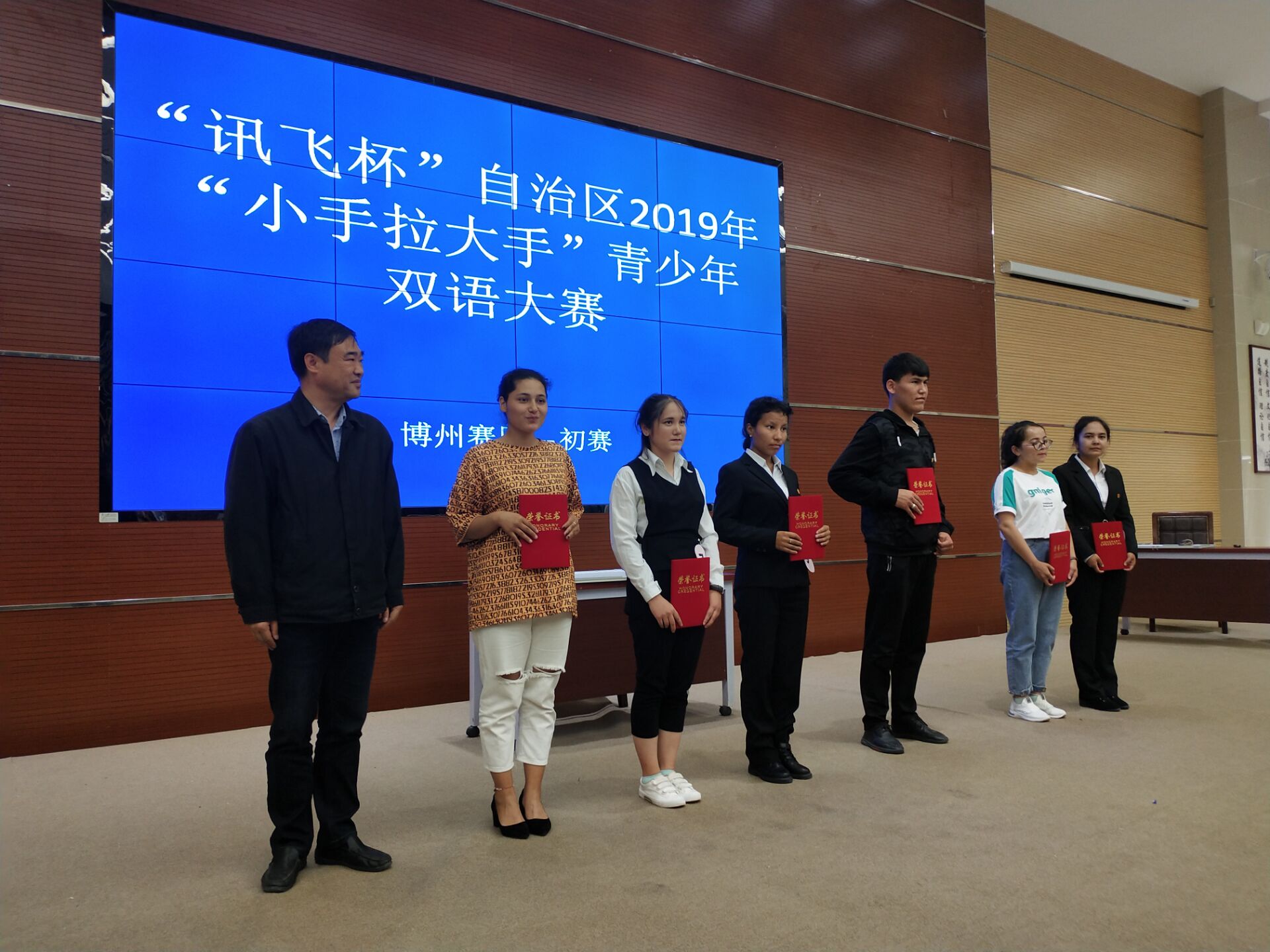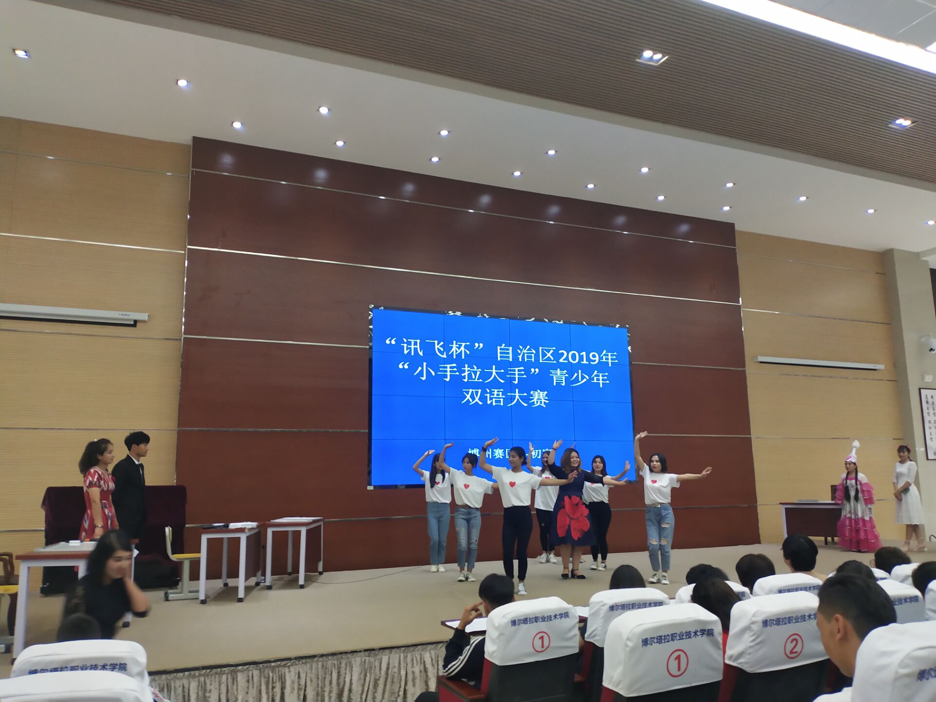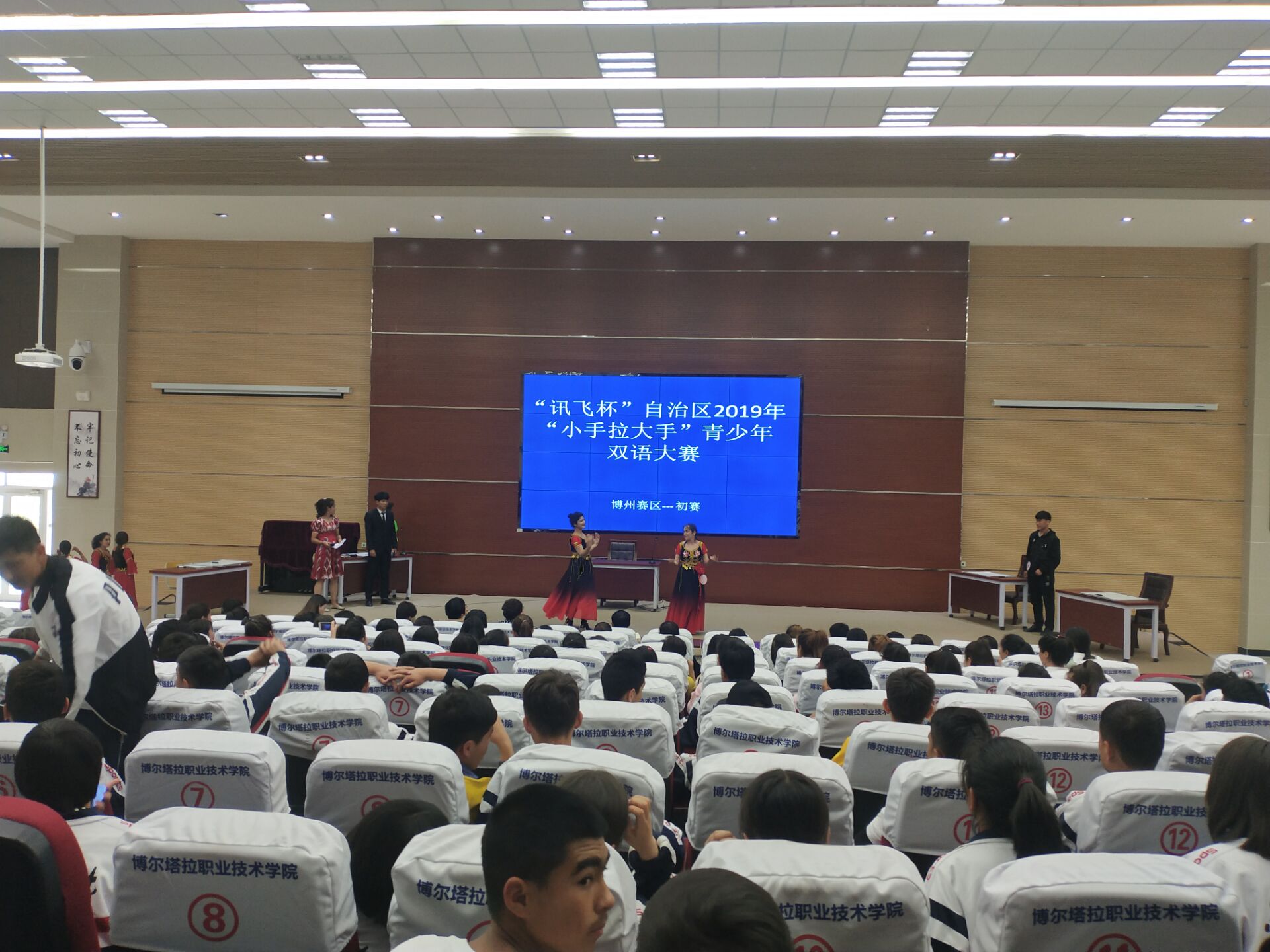 为全面贯彻落实自治区党委关于加强国家通用语言文字的部署要求,激发各族青年学习和掌握国家通用语言文字的热情,展现各民族师生交流交往交融的喜人景象,根据自治区教育厅关于举办“讯飞杯”自治区2018年“小手拉大手”青少年双语大赛的要求,5月27日上午,学院在阶梯教室举行了博州“小手拉大手”青少年双语大赛。
