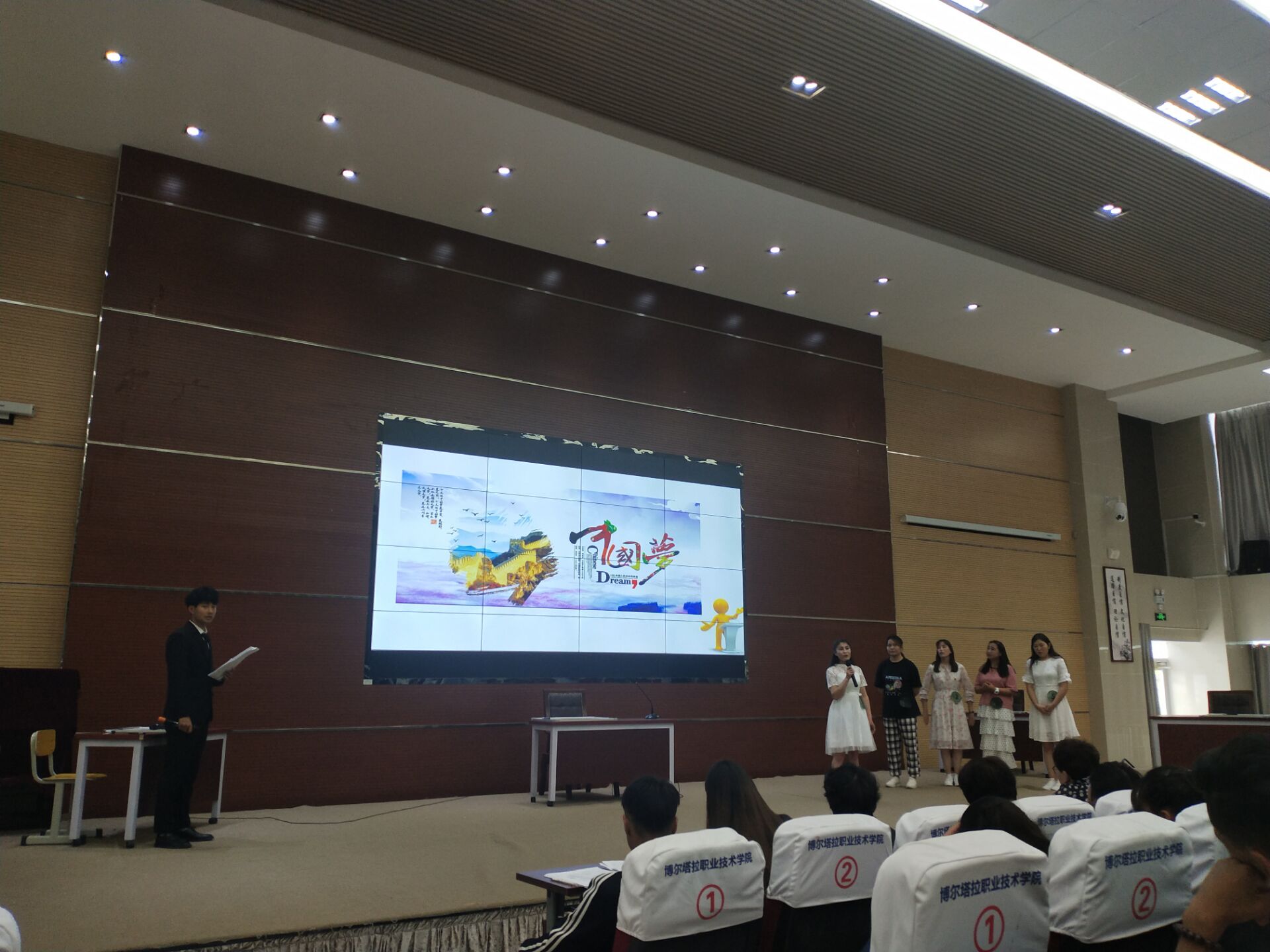 本次活动分为“固定环节”和“特色环节”两大部分。“固定环节”包括“自我介绍”、“主题演讲”、“才艺展示”三部分,“特色环节”包括“经典诵读”、“综合知识问答”、“成语猜猜看”三部分。活动中,来自双语组、民考汉组、民语言组的27名选手都是经过学院各个班级的层层选拔并最终推荐上来的选手。比赛中,选手们围绕民族团结、社会主义核心价值观、中国梦、社会热点话题等,运用国家通用语言文字进行了精彩激昂的演讲;并展现了异彩纷呈的才艺表演,内容包括写毛笔字、跳舞、唱歌、小品、弹奏冬不拉等。学生们精彩的表现,充分彰显了博职学子的内在素养与独特风采,赢得了在场评委和观众的肯定和阵阵掌声。
